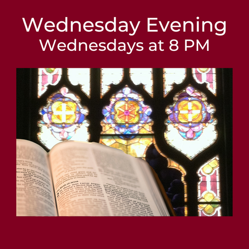 Join us Wednesday evenings at 8 PM for a Bible Study discussion.